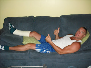 Yes, you read it right. Last Tuesday while tumbling at a pro tennis event in King of Prussia, Bill ruptured his achilles tendon. He had surgery on Friday and is recovering on the couch in a cast. We are praying for a speedy recovery. By God's grace, Bill will continue being the mascot but will have to from now on limit his tumbling & dunking. God continues to show us that He is our provider and that there is no thing he has not ordained or allowed for His great purposes. We know that we can only see the partial picture of His great plan for us, so that's where faith comes in. As I type I am reminded of the verse, "Without faith, it is impossible to please God". I am grateful for friends and family who pray (and bring meals)...That has been a tremendous blessing for our family.